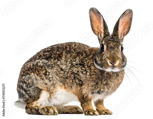 © Dea, Fototapeta premium Alert Brown Rabbit Portrait on White Background - A Captivating Wildlife Study.