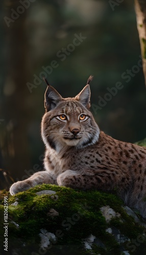 © decorator, Fototapeta premium Alert Eurasian lynx portrait reveals peaceful nature conservation a stunning wildlife moment