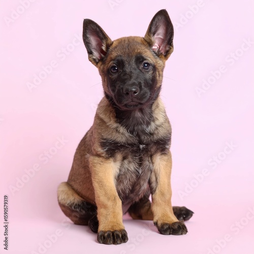 Obraz premium Alert Eyes, Loyal Heart: Short-haired Dutch Shepherd Puppy Portrait, Generated image