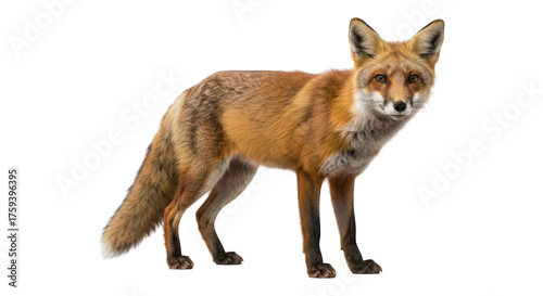 © Dece Std, Fototapeta premium Alert fox stands, facing forward, with warm orange-brown fur