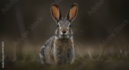 © Ilham Mo, Fototapeta premium Alert Hare Stares Intently in Natural Habitat.