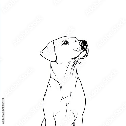 Fototapeta premium Alert Labrador, line art, white background, pet portrait, design element