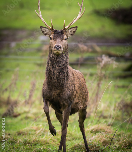 © Gabriel Cassan, Naklejka premium Alert red deer stag with front leg raised