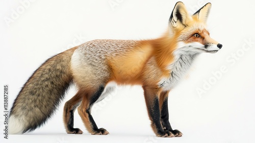 © Boris, Obraz premium Alert red fox standing side view on white background