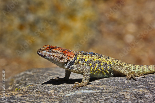 Naklejka premium Alert spiny lizard on rock in Tucson, Arizona
