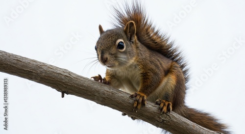 © Nguyen, Obraz premium Alert Squirrel Perches on Branch Soft Light. AI Generated