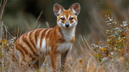 © Nuntapuk, Naklejka premium Alert Tasmanian Tiger in Sparse Landscape