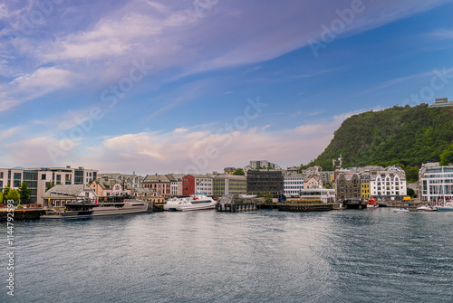 Fototapeta premium Alesund is a city and municipality in Møre og Romsdal county, Norway. It is a port 236 km northeast of Bergen