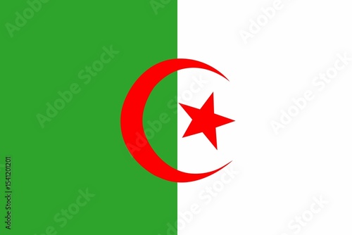 Naklejka premium Algeria flag is showing green and white halves, featuring red crescent and star in flat design