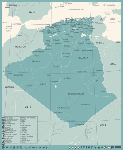 © Porcupen, Obraz premium Algeria Map - Vintage Detailed Vector Illustration