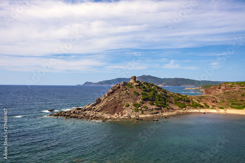 © Art Media Factory, Fototapeta premium Alghero, Sardinia Italy - Panoramic view of the Cala Porticciolo gulf with Torre del Porticciolo tower in the Porto Conte Regional Park