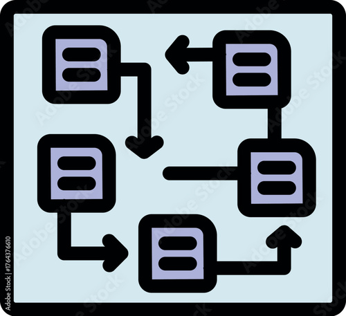 Fototapeta premium Algorithm flowchart representing data processing, featuring interconnected blocks and directional arrows illustrating the workflow