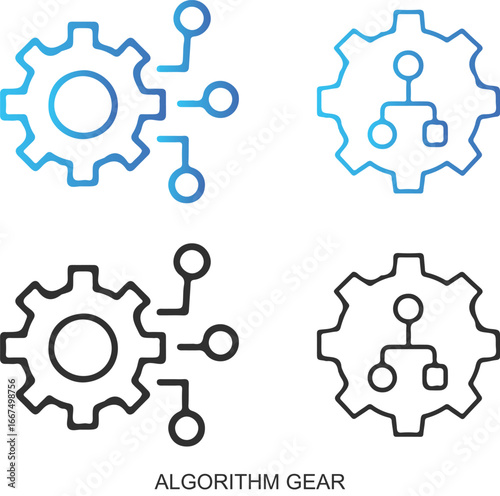 © RayZing , Obraz premium “ALGORITHM GEAR” – Icon Quartet Featuring Gear-Network Hybrids for Emotional-Tech Branding, Machine Logic Systems, and Modular Intelligence Architecture