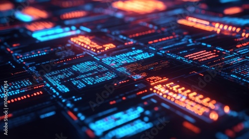 Fototapeta premium Algorithm mapping, glowing holographic panels, complex data visualization,...