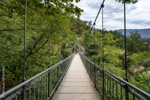 Obraz premium Algunder Waalweg Hängebrücke - Meran - Südtirol - Italien
