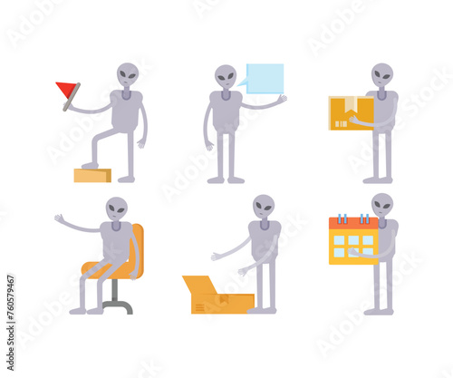© bigpa, Obraz premium alien character in various poses vector illustration