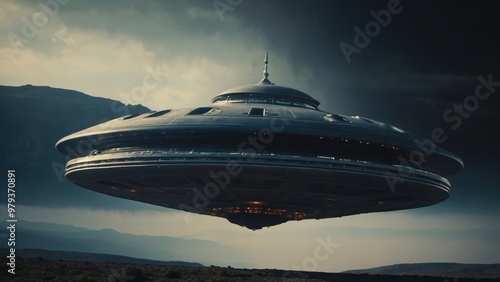 Obraz premium Alien makes an unforgettable arrival in a sleek flying saucer, creating...