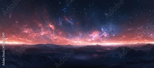 Fototapeta premium Alien Planet Landscape, Starry Night Sky, Mountain Range