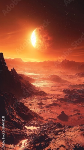© ika, Fototapeta premium Alien Planet Sunset: A Martian Landscape