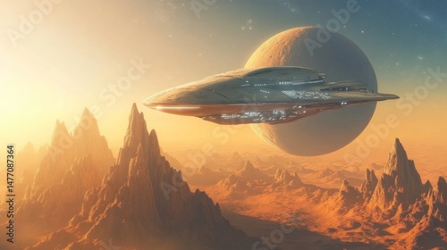 © Umi Sakina, Obraz premium Alien spacecraft over a desert planet