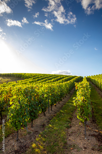Naklejka premium Alignement de cèpes de vigne dans un vignoble avant les vendanges.