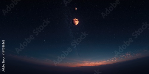 © AkuAku, Obraz premium Alignment of Mars, Uranus, and the Moon in a planetary conjunction, astronomy, Earth and solar system planets