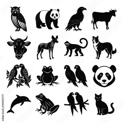 © Rajon, Naklejka premium all animal vector illustration art,Modern animal Infographic Template,Cow face logo,