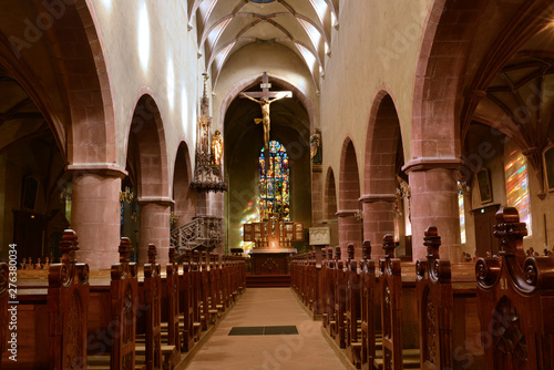Fototapeta premium Allée centrale de l'église Saint-Barthélemy à Saales (67420), département du...