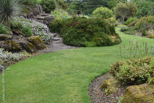 Obraz premium Allée gazonnée sinueuse au jardin