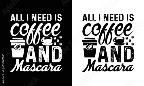 © MstNasrinAktar, Naklejka premium All I Need Is Coffee And Mascara , Coffee Quote T shirt design, typography