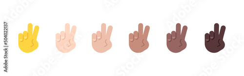 © Stalvalki, Fototapeta premium All Skin Tones Victory Hand Gesture Emoticon Set. Victory Hand Emoji Set