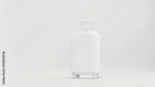 © Gayan, Obraz premium All White Suitcase On White Background