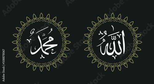 Obraz premium Allah muhammad Name of Allah muhammad, Allah muhammad Arabic islamic calligraphy art with circle frame and retro color