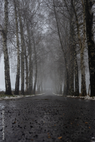 Obraz premium Allee im Winter bei Nebel