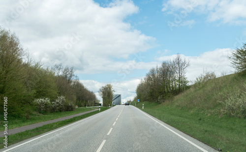 Fototapeta premium alleine auf der Strasse auf eine Brücke zu fahrend