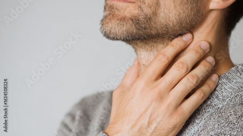 © Pricha, Fototapeta premium Allergic To Wine. Man touching his throat, suggesting discomfort or contemplation.