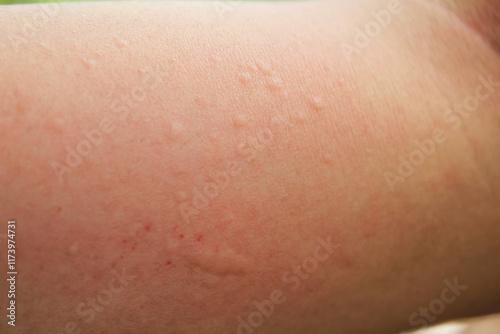 © Restu, Fototapeta premium Allergy Skin rash appears red and itchy on the man's arm