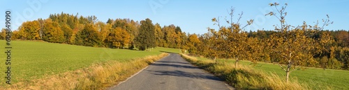 © Daniel Prudek, Fototapeta premium alley deciduous trees and road autumn panoramic view