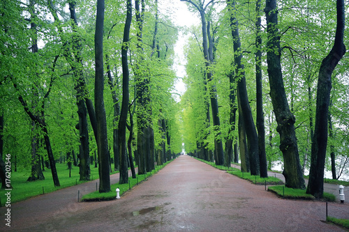 © kichigin19, Fototapeta premium Alley in spring park green trees
