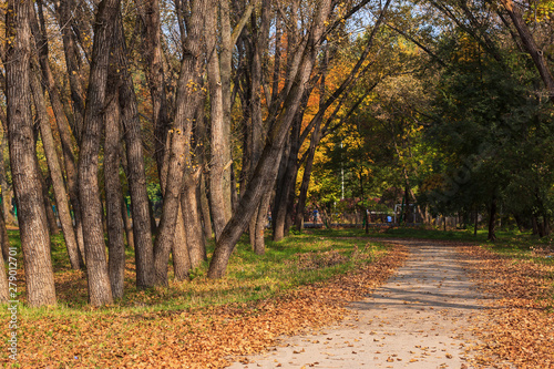 © Anka, Naklejka premium alley strewn with Golden leaves from trees in autumn