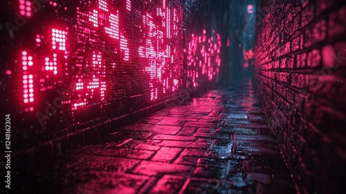 Obraz premium Alley with Glowing Holographic Graffiti Illuminating the Moody Urban Environment