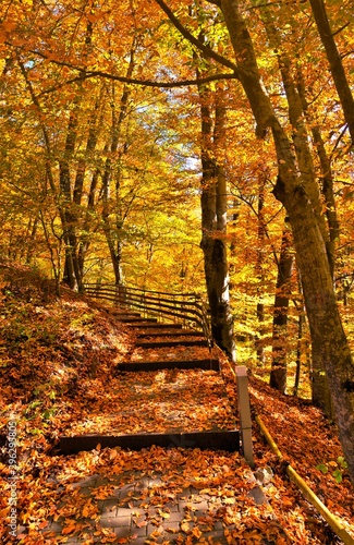 Naklejka premium alley with stairs in autumn forest