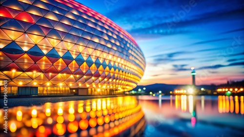 Obraz premium Allianz Arena Stadium Night Lights Bokeh, Munich Germany, Stadium Exterior,...