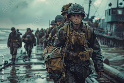 Fototapeta premium Allied Forces Enhance Soldier Landings at Normandy with Innovative Accessibility Measures