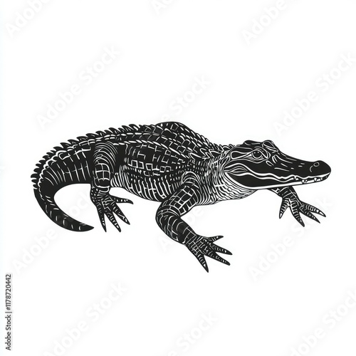 © Nailah, Fototapeta premium Alligator: Black and White Wildlife Illustration