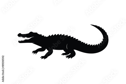 © Hasan Asib, Fototapeta premium Alligator black silhouette isolated on white background showing large reptile walking