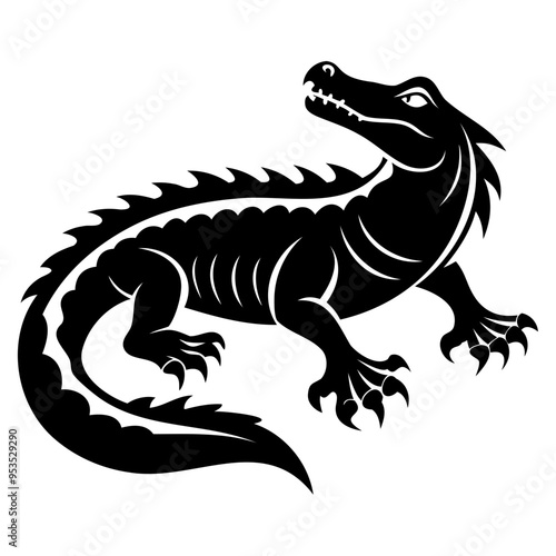 © QuickDesign24, Fototapeta premium Alligator Black silhouette vector illustration Isolated on a white background