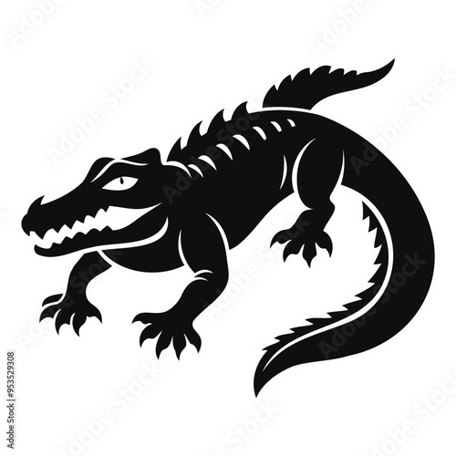 © QuickDesign24, Naklejka premium Alligator Black silhouette vector illustration Isolated on a white background