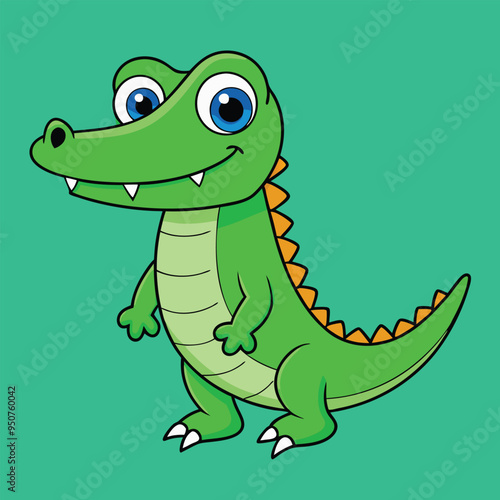 © Tarek, Obraz premium Alligator Cartoon Vector Illustration - Clipart, and Line Art Design
