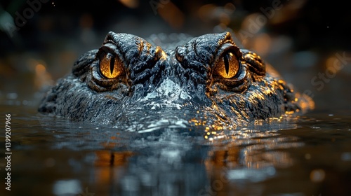 © Muamanah, Obraz premium Alligator Eyes: A Close Encounter in the Murky Waters